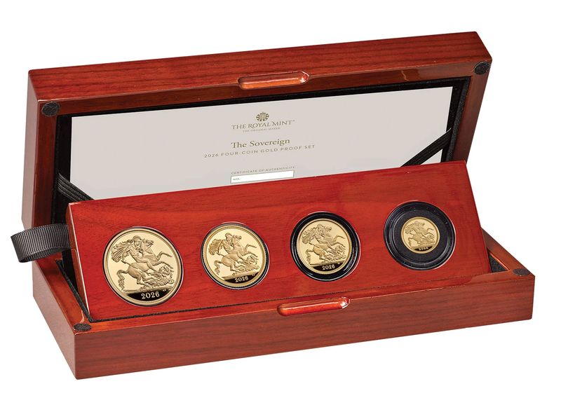 Benedetto Pistrucci’s portrayal of St George and the dragon appears on the reverse of each coin and the four 2026 editions are The Sovereign, Half-Sovereign, Quarter-Sovereign and Double-Sovereign.